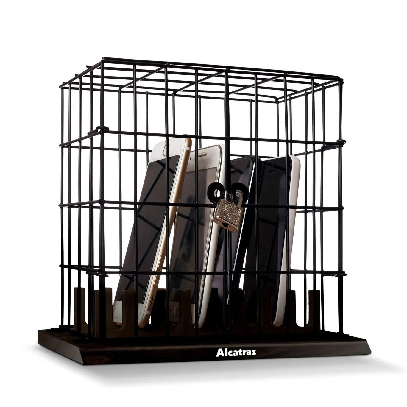 Alcatraz is the perfect solution to realize this concept. It is a small prison for mobile phones. The telephones must be placed inside the cage and the prison is closed with a lock. During dinner it helps to socialize with others without being dependent on the mobile phone. it keeps 8 smartphones -