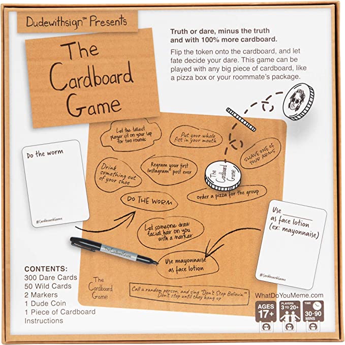 How to Play: Flip the token onto the cardboard, and let fate decide your dare. This game can be played with any big piece of cardboard, like a pizza box or your roommateâs package.