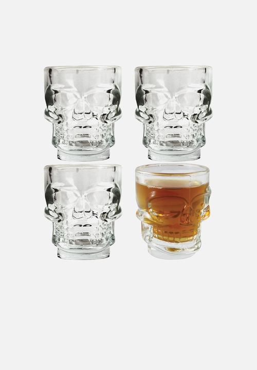 Add an element of danger to your next party with this wicked Pack of 4 skull-shaped shot glasses. Simply pick your “poison” and fill! Sculpted heavyweight Shot glasses are dishwasher safe. Approximately 2” high. Holds approximately 2 ounces.