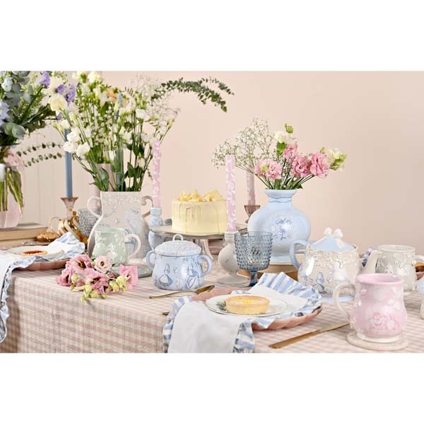 A Disney Alice in Wonderland Trinket Box, an officially licensed product that is tailor-made for superfans. Crafted from ceramic with a glazed finish in light blue and beige colours. This product is a celebration of one of the central characters of this fantasy tale, namely The Queen of Hearts. Full of originality in design this item is part of a wider collection. The collection includes photo frames, candles, vases, and more, creating a cohesive and magical theme for Disney enthusiasts.
