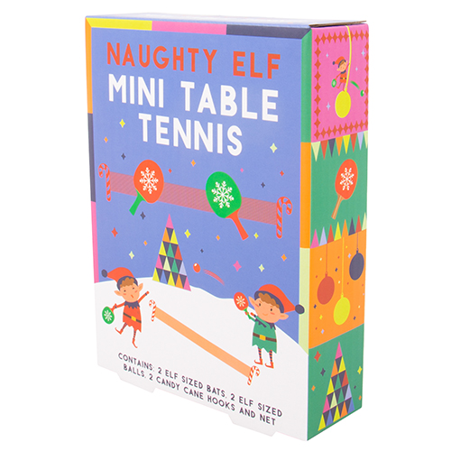 This festive table tennis set of elf-size proportions is ideal for some competitive Christmas fun. Use the suction cups to secure the candy cane pole and net to a flat surface. Grab one of the mini bats and get ready to serve! Keep a close eye on the ball and return it back over the net. This cute miniature set includes two festive bats, two coloured balls, 2 candy cane hooks and a net.The length of the net is 45cm to stretch across your surface, being secured by the 10cm hooks. The balls have a diameter of 2.5cm. Each bat has a total height of 14cm. -