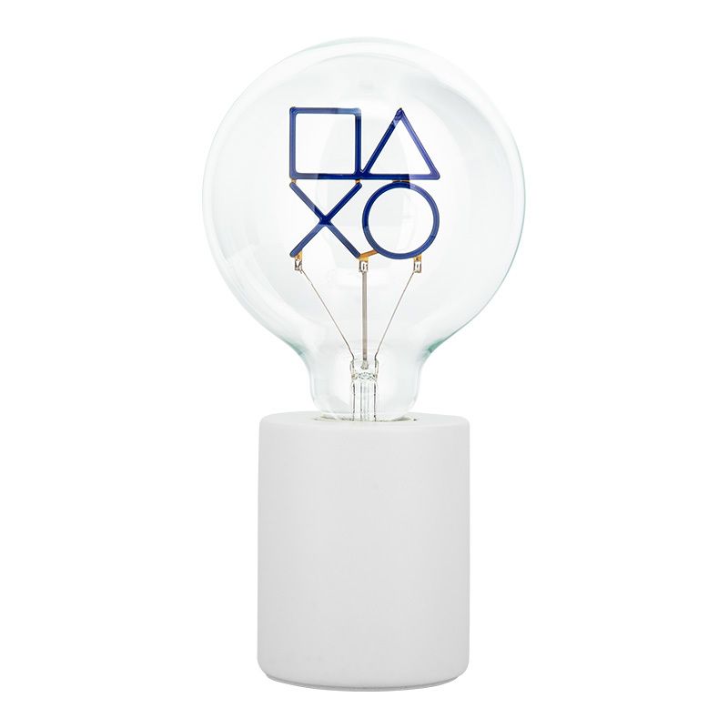 The lamp stands at 24.3cm (9.5″) tall and comes with a ceramic base. Its decorative E27 LED bulb features a PlayStation icons shaped filament that lights up with a classic blue glow. Housed in a clear glass bulb, it’s perfect for adding a pop of colour to any room at just the flick of a switch.