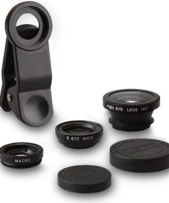 The 3 in 1 Lens Set adapts to fit all devices including tablets, allowing the user to take photos using a wide angle, macro and the classic 180-degree fisheye lens on a standard phone camera, front and back. Simply choose your lens, clip over your camera and snap away, you will instantly see the effects, taking some incredible photos and interesting selfies.