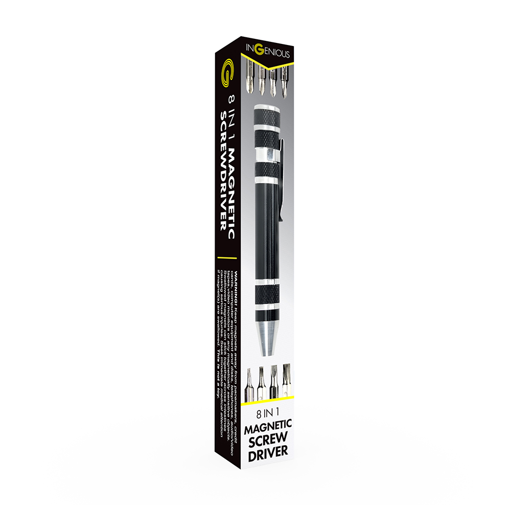 The 8-in-1 magnetic screwdriver offers versatility with a eight interchangeable tips in one compact tool.