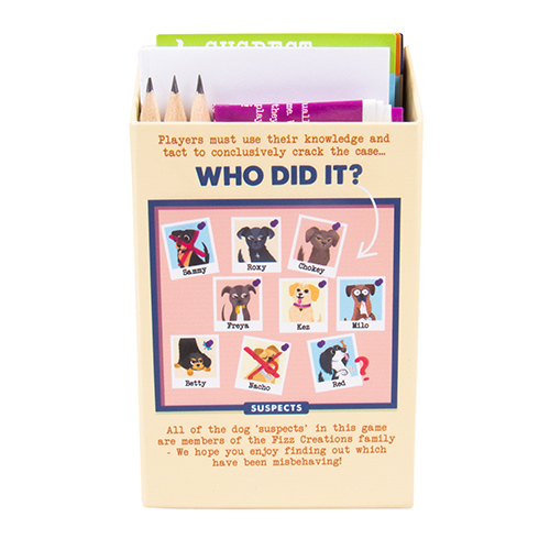 Sherlock Bones is the ultimate whodunit game for dog lovers! Get ready to put your detective skills to the test as you solve a mystery in the canine world. Unravel mysteries using clues, strategy, and deductive reasoning. You’ll need to use your wit and intuition to figure out which of the nine Dogs committed the crime!