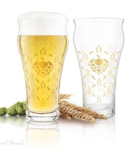 Hand finished with a barley & hops gold foil design these lead-free crystal glasses feature a flared rim that contours to the lips for improved flavours.