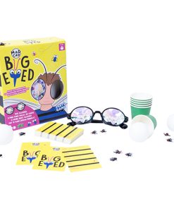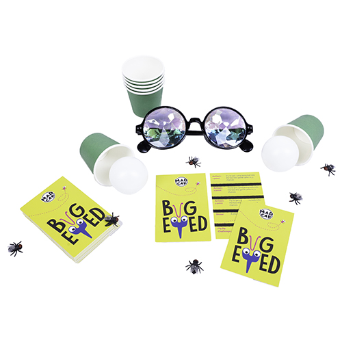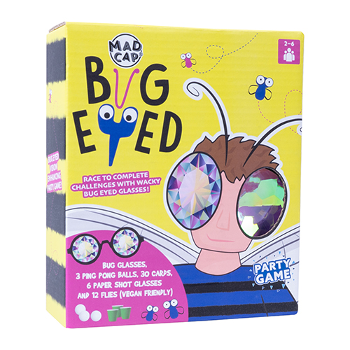 Bring some extra buzz to your games night with with Bug Eyed! Don these reality distorting glasses and tackle tasks with insect vision for added hilarity! This unique party game combines skill, difficulty, and general silliness for non-stop laughter and fun for all the family! This fantastic new addition to the MAD-CAP range guarantees a great time with little set-up needed! Simply unbox the contents, put on the specs, and complete the tasks to win points and become champion!