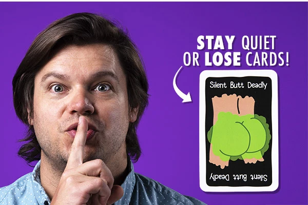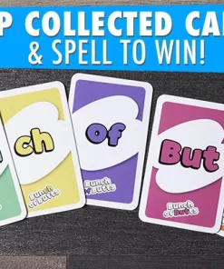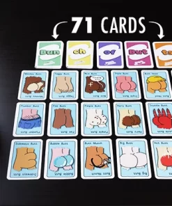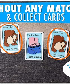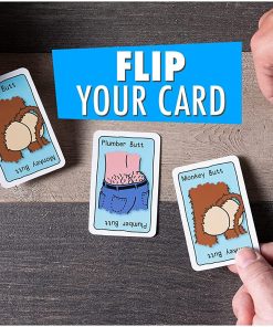 If you see a butt that matches one in your possession, shout it out before the other players, and you’ll be rewarded with the card. Hold onto your butts because with this game you’re going to need ’em! The first player to spell out “Bunch of Butts” with their card booty is the winner.