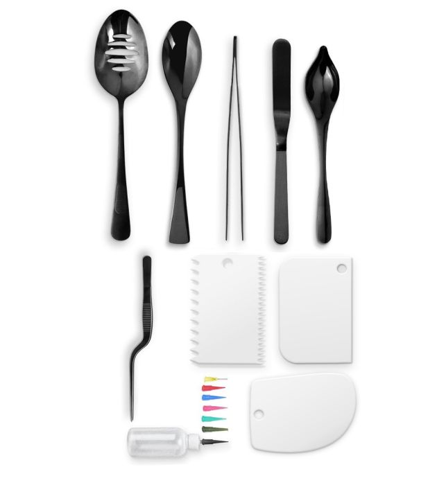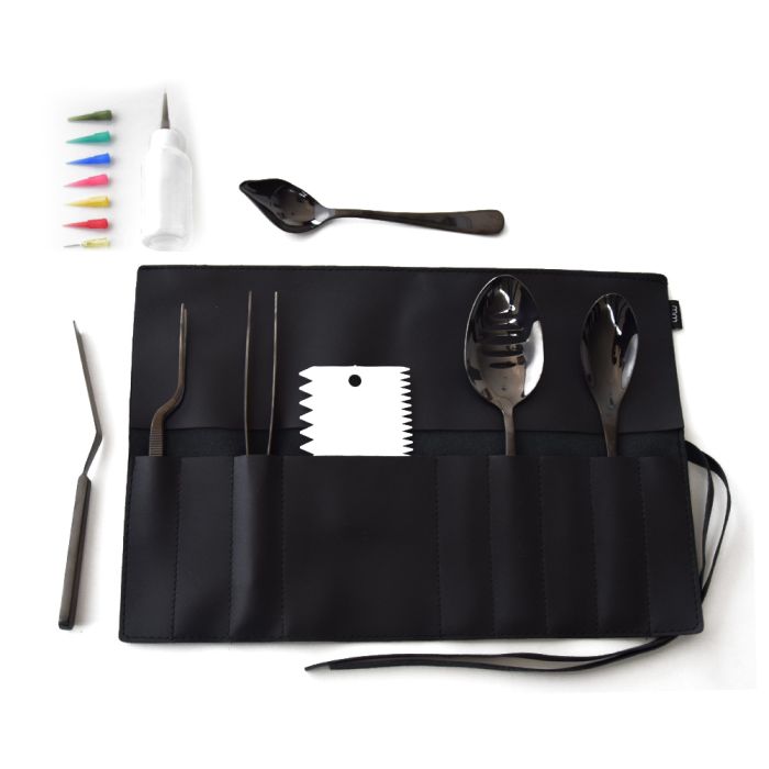 Chef Plating Tool Set has all the tools needed for the home chef or seasoned professional. The high-quality plating tools come in a stylish PU leather bag, with enough room for 2 extra tools, so you can easily take your tools with you.