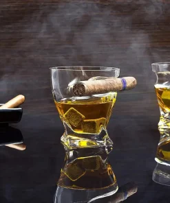 TWIST WHISKEY CIGAR GLASS – The intend cigar rest is a cool feature for cigar lovers to securely hold the cigar and keep it from slipping and falling. – The Glass is both, a cool whiskey glass and a cigar holder.