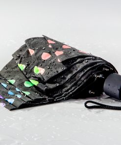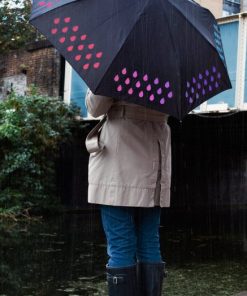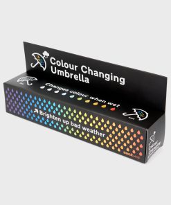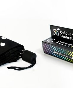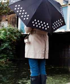 Brighten Up Bad Weather. Simple white raindrop pattern transforms into a rainbow burst of colour when the umbrella gets wet. Printed with special ink, that comes to life when in contact with water. Confuse a generation of children into thinking rainbows are leaking colour from the sky.