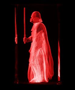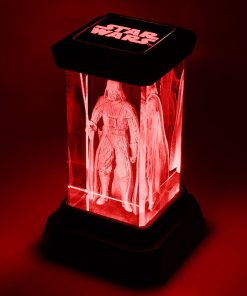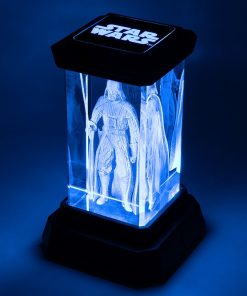 The 12cm tall light contains a 3D laser etched crystal model of Darth Vader holding a lightsaber. The light has three lighting modes – choose between resistance blue or empire red, or let the light phase between the two.
