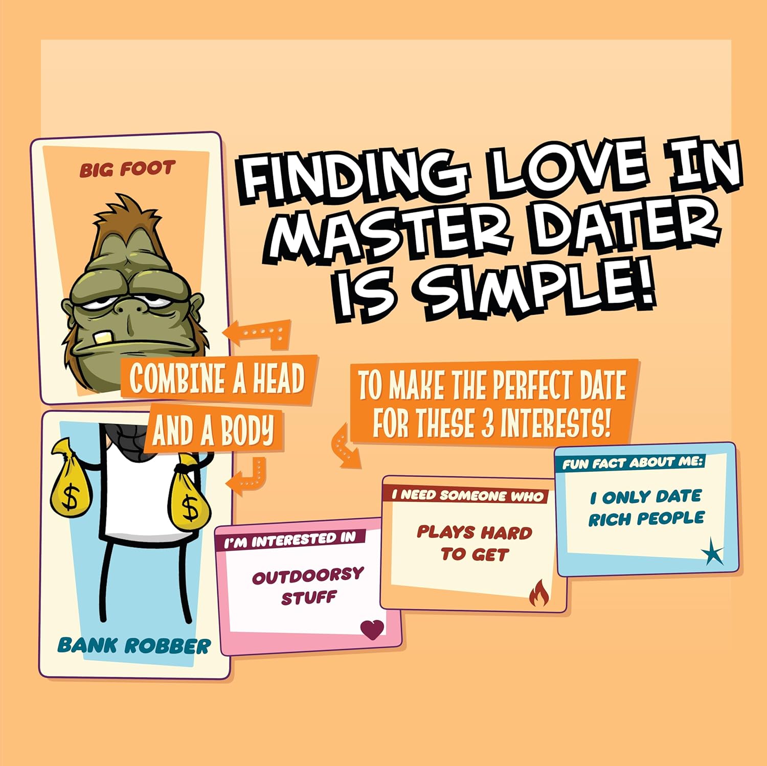 In Master Dater, the newest card game from Cyanide & Happiness, players vie for each others’ attention and affection by creating perfect, horrible dates pandering to very specific dating interests. Combine a head and a body into a perfect match, and argue your way into the heart of the sexy single. Defeat your rivals, win at love!