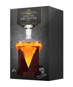 Surprise your friends and loved ones with the unique Diamond Decanter. It’s not only a beautifully crafted decanter, but it’s also a piece of art and a conversation starter. Both the decanter and the stopper are made of 100% glass. This preserves the authentic taste of your whiskey or bourbon. This unique decanter that holds up to 850 ml, is made with ultra-clear glass that’s lightweight and durable. The decanter comes with a luxurious solid red oak base which is handcrafted by skilled carpenters. The glass stopper ensures an airtight seal so your liquor will be preserved. Pouring your favourite drink from the Diamond Decanter will make the drink even more enjoyable. It makes a great gift, if you’re willing to give it away.