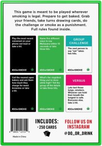 - Never Have Another Boring Smoke Sesh – Our adult party games are designed to keep the party going with hilarious moments. Bring Do or Smoke and keep your guests from zoning out on their phones…