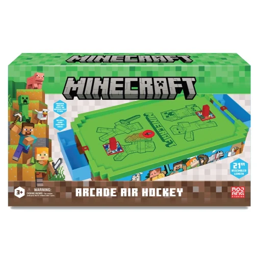 Prepare for a whirlwind of excitement with the Ambassador Minecraft Overworld Arcade Air Hockey Table! This delightful 21-inch table brings fun for kids and adults alike, designed for anyone aged three and older, making sure everyone can join in on the action. With its vibrant colours and engaging Minecraft theme, this table transforms any space into a lively competition zone filled with laughter and playful banter. Equipped with two pushers, two hover pucks, and an impressive collection of 14 unique collectible pusher covers, it encourages endless creative possibilities for every match! Simply pop in a couple of AA batteries and let the games begin.