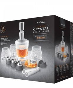 • Includes: 1 Decanter, 1 stopper, 4 whiskey glasses, 4 stainless steel chilling balls, 4 chilling ball bases & tongs.