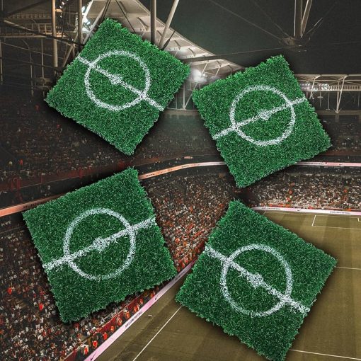 Are you a real soccer fan and would like to surprise your guests? Then these soccer coasters in the shape of a playing field are just the thing for you. The special thing about them is that they feel like artificial grass, giving your table a natural and realistic look. The design is based on a soccer field, but only with the centre circle, which symbolizes the centre of the action. Whether you’re watching a game, having a party or simply enjoying your beer in comfort, these coasters create a great atmosphere and a sporty flair.
