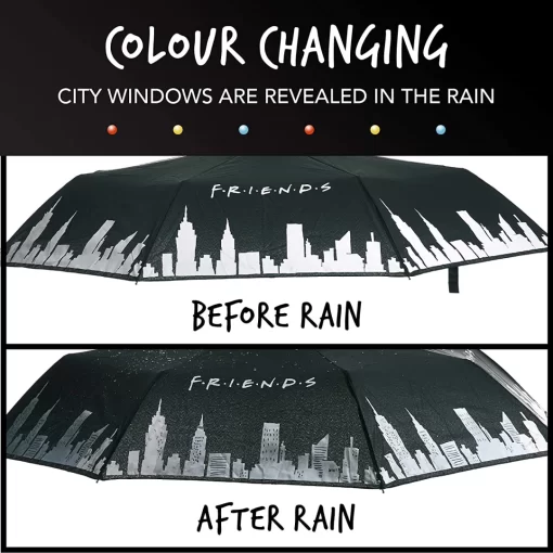 The Friends Colour Change Umbrella is printed with the New York skyline. It changes the colour when it gets wet. As the umbrella dries off the skyline returns to the original colour, allowing you to enjoy the transformation time and time again. Brighten up even the dullest days and inspire every fan of the cult series Friends.