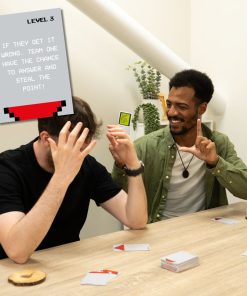 Put your knowledge to the test with this retro gaming quiz! Compete with your team to guess answers correctly and collect cards – the first team to build the heart wins! Game On is an ultra-cool gaming-themed trivia game featuring 100 console-shaped cards and multiple choice questions. Ideal for dinner parties and games nights, its compact size means you can play anywhere you go!