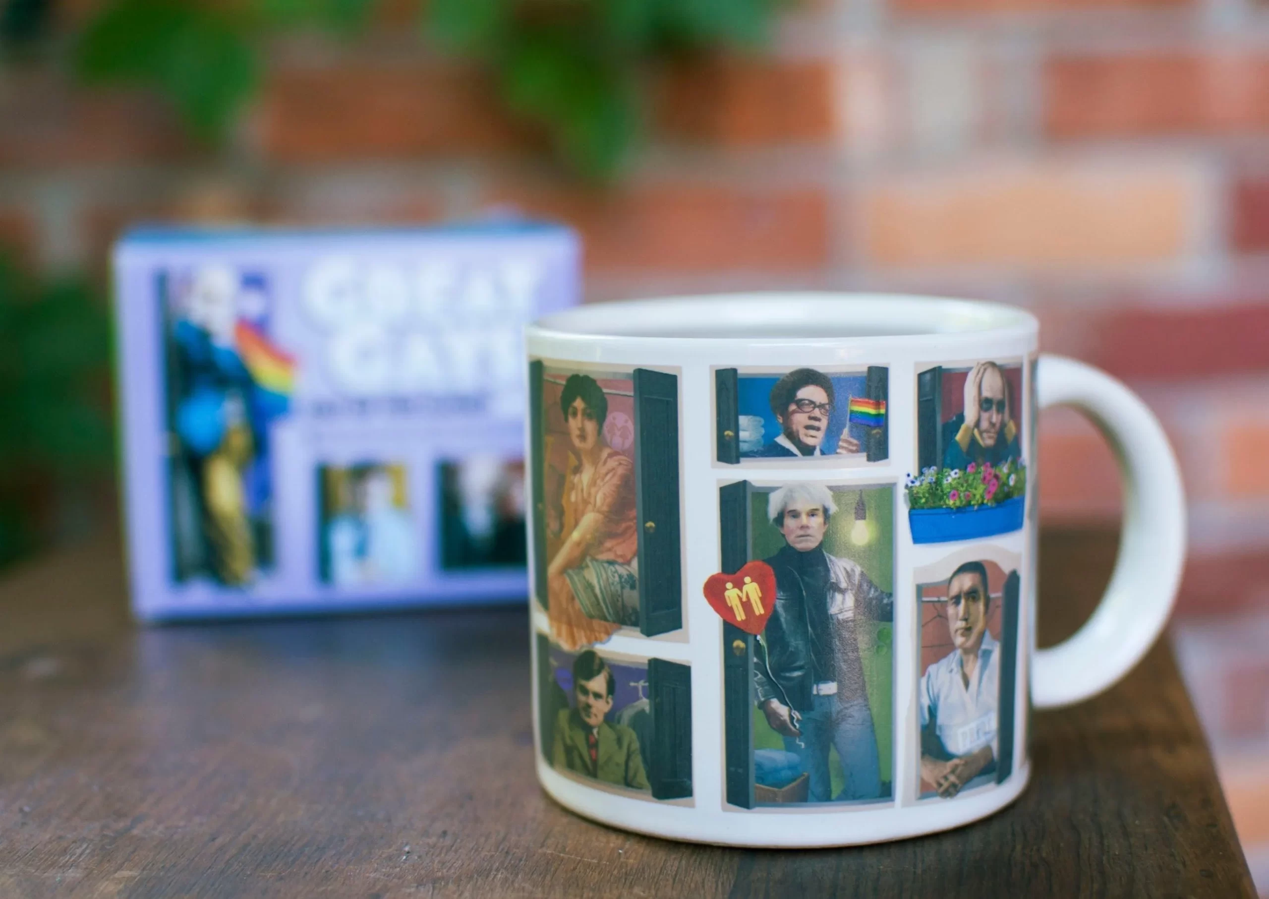 What do Walt Whitman, Oscar Wilde, and Andy Warhol have in common? If you’re thinking, “They were all gay,” you’re only half right. They’re also all included in this amazing Great Gays Out of the Closet Mug. When the mug is empty, it shows fourteen closet doors. But when you pour in a hot beverage, 14 of the world’s most famous gays proudly emerge. Michelangelo, Michel Foucault, Freddie Mercury – talk about star bucks! And there’s also Willa Cather, Tchaikovsky, Sappho, Alan Turing, Audre Lorde, Yukio Mishima, and Gertrude Stein. The Great Gays Mug might be the most outrageous and proud cup of coffee ever!