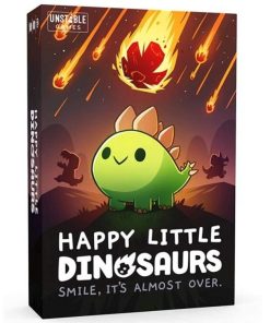 In Happy Little Dinosaurs, the first person to reach 50 points, or be the last Dinosaur standing, wins the game! During each round, you’ll flip a Disaster card featuring a Natural, Predatory, or Emotional disaster. Each player will play a Point card in hopes of collecting points and avoiding the disaster.