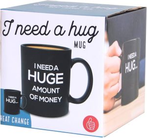 At first glance this mug might make you look like a big softy. Fill it with a cuppa and onlookers will think again. This heat-changing mug displays ‘I need a hug’ when cool but changes to reveal ‘I need a huge amount of money’ when hot. That’s one way to ask for a pay-rise.