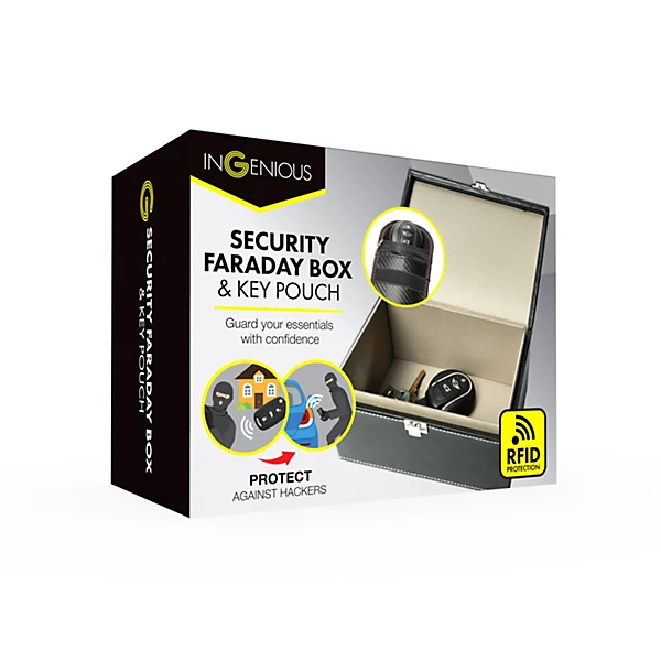 Keep your valuables stylishly protected with the InGenious Faraday Box and Key Pouch combo, designed for contemporary lifestyles. This chic set blocks unwanted signals, shielding against digital threats while ensuring your essentials are all neatly tucked away. The spacious Faraday Box easily accommodates your keys and more, while the compact Key Pouch is ideal for trendy outings, merging fashion and functionality seamlessly.