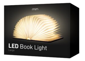 This book with a wooden cover can be used as a lamp or stored on a bookshelf. The book emits warm white, white and a combination of both. It is rechargeable through USB.