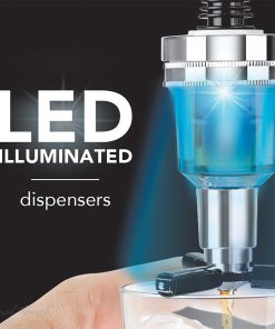 - Includes: Bottle stand, 4 removable spouts with LED illumination (batteries included) & instructions.