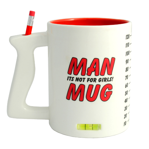 So men might claim that they can’t multi-task but this mug certainly can. Not content with holding a mega mug of man’s favourite cuppa, the mug also comes with a pencil slot and pencil in the handle, a ruler etched into the mug and a spirit level built into it!