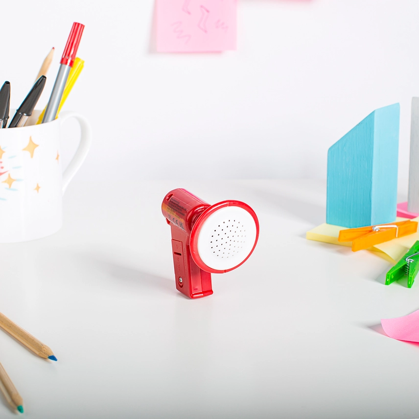 A battery-operated mini-megaphone that distorts your voice.