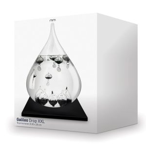 This droplet-shaped Galileo Thermometer is filled with 9 spheres containing black liquid, indicating temperatures in Celsius. Presented on a black wooden base for a sleek finish and added stability. It is inspired by Galileo Galilei’s 17th-century work on fluid density and temperature, this thermometer is both practical and visually interesting. Witness the spheres moving as the temperature changes, creating a captivating display. It’s not just for checking the temperature – it adds a touch of elegance and science to your home or office!