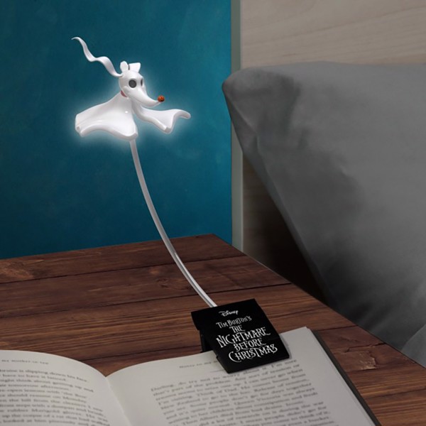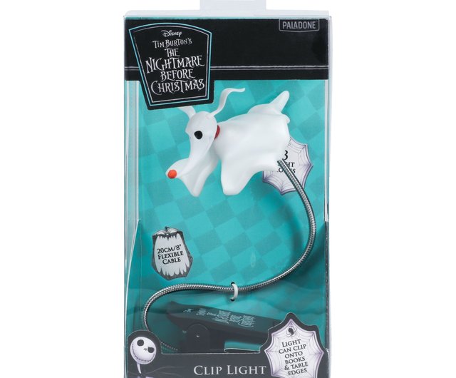Enjoy reading some late-night ghoulish tales with this Nightmare Before Christmas Clip Light. The white clip-on reading light has a flexible metal arm that can be angled towards whatever direction you need it most. The light head is shaped like Jack Skellington’s loyal ghost-dog, Zero, and glows white when turned on. The Nightmare Before Christmas Clip Light is perfect for book-loving Tim Burton and Disney fans of all ages.