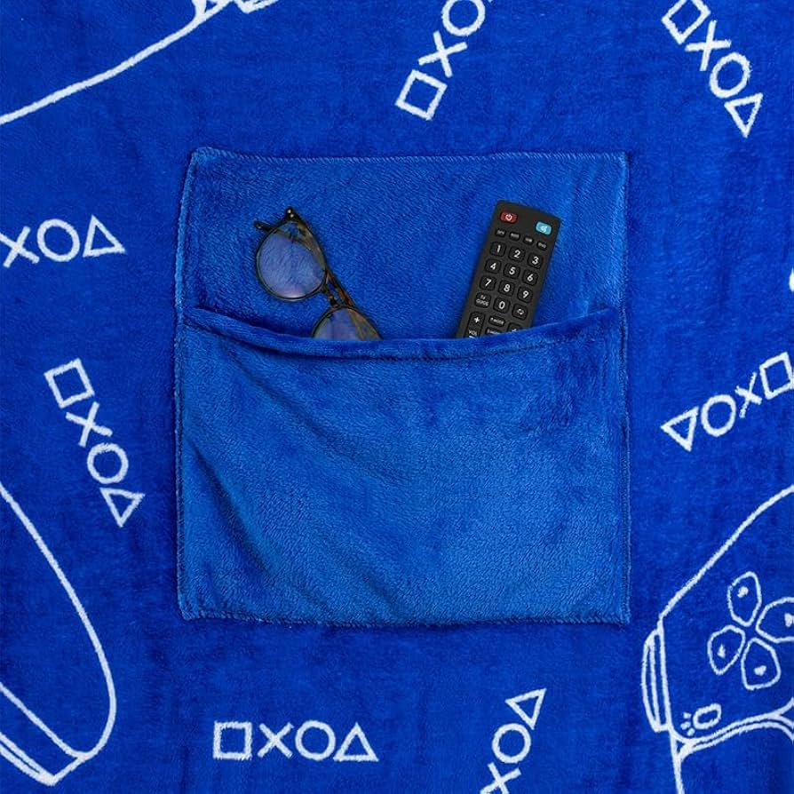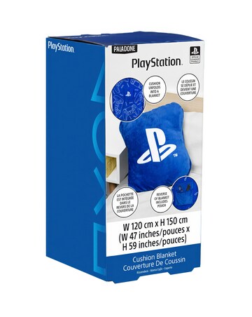 Level up your comfort with the PlayStation 2-in-1 Cushion Blanket by Paladone. This officially licensed Sony travel blanket showcases the iconic PlayStation symbols, making it a perfect accessory for gaming enthusiasts. Measuring 120 cm by 150 cm (47 inches by 59 inches), this soft and fluffy throw easily folds into a compact cushion. Whether you’re enchancing your gaming room, bedroom decor, or preparing for travel, this versatile blanket combines style and convenience. With a reversible pouch integrated into the design, it’s a functional and stylish addition to any gamer’s collection.