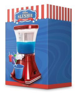 Enjoy homemade slushies with the Retro Slushie Maker. Customize your slushies by adding your favourite syrups or drinks, unlocking endless flavour possibilities. Simply add ice and salt, and watch as the easy-flow spout dispenses consistently smooth frozen drinks. It has a generous 1-liter capacity, a detachable cup rest.