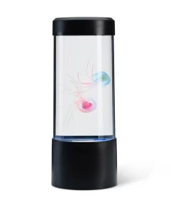 This atmospheric mood lamp would look great perched on a home office desk or bedside table with the two jellyfish floating around. The 2 LED lights used in this lamp are red, blue and green to highlight the jellies as they float. The jellyfish’s tendrils float behind them as they move creating a realistic effect without the hassle of cleaning out the tank. This cylindrical lamp requires 3xAA batteries (not included).