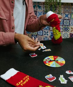 Can you recover all the stolen items from the sock and save Christmas from the Grinch! Be the first player to successfully identify the object chosen by the spinner, feeling around your sock for the right shape before announcing your find! But make sure you’re certain – an incorrect guess means you forefit the round! The first player to collect all eight objects wins this fabulously festive game!