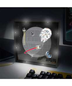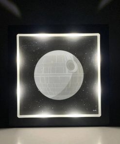 Display your Star Wars fandom with this Star Wars frame light from Paladone Products. This light features memorable Star Wars ships around a menacing Death Star. This battery operated light includes reusable starship decals and is powered by 2 AA batteries (batteries not included).
