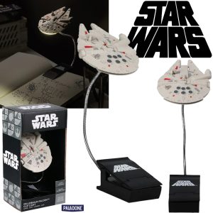 Fly through your next read at any time with the help of this Millennium Falcon Clip Light. The clip-on reading light has a 20cm (8″) flexible cable that can be angled towards whatever direction you need it most. Perched on top is the head light, shaped like Han Solo’s trusted ship, which glows when turned on. Power the book light with 3x AAA batteries (not included). It has three light modes so you can choose your brightness level. The Millennium Falcon Clip Light is perfect for book-loving Star Wars fans of all ages.