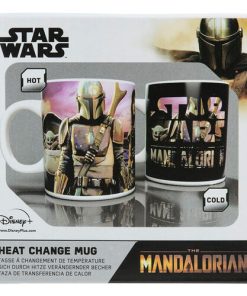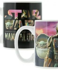 Pour in any hot beverage of your choice and watch as the outside of this 300ml (10.55 fl oz) capacity mug magically changes. The Star Wars and The Mandalorian logos disappear to reveal a full colour wrap around image of Mando himself along with The Child aka “Baby Yoda”.