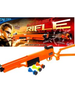 This Sureshot Rifle is great for accurately shooting suction darts, with its front and rear sights. It’s made from sturdy plastic, is lightweight, and can be used indoors and outdoors. The rifle includes 3 Sureshot sucker darts. It’s suitable for ages 8+