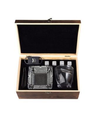 WHISKEY & CIGAR GIFT SET with Cigar Holder Glass, Stones, Tongs, Cigar Cutter & Ashtray