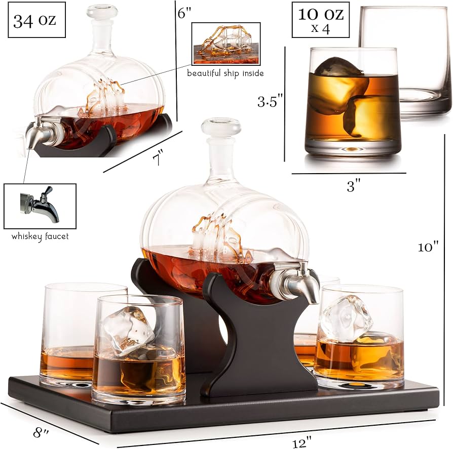• 👑SHIP IN A BOTTLE – A Work of Art, A Conversation Starter: Each whisky Barrel bourbon decanter is a skilled artisan’s decorative handblown masterpiece, with a custom designed ship on the inside, detailed and beautiful, you will be so proud to use and display.