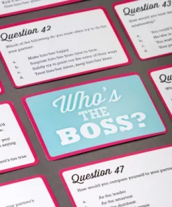 Dominant or doormat? Powerful or passive? This game is the perfect means for couples trying to decide who wears the trousers in the relationship. – Relationship game – Contains quiz questions to determine who is the alpha partner