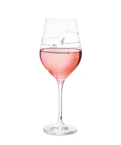 First-class wine glass with musical scale print. Whether as a bottle glass, red wine glass or white wine glass – the Glass of Music is the mood maker of the wine glasses!