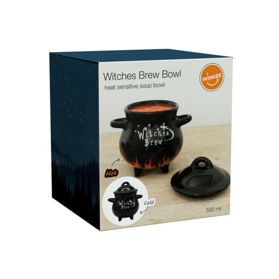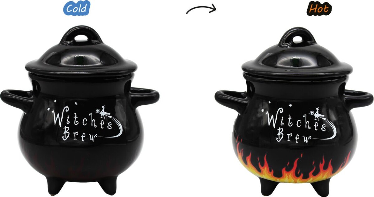 The Witches Brew Soup Bowl is shaped like a witch’s cauldron, and because it is made of a heat-sensitive material, flames will appear at the bottom when you fill it with hot soup.